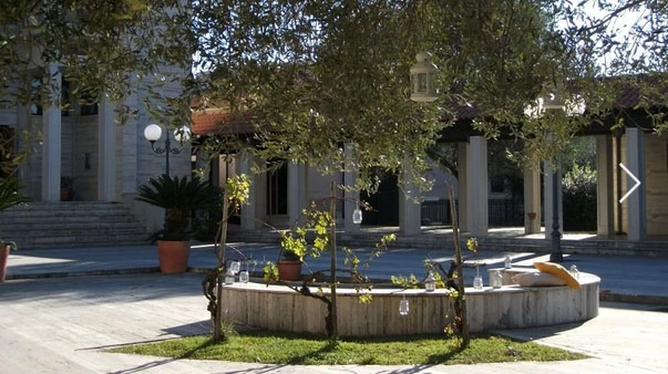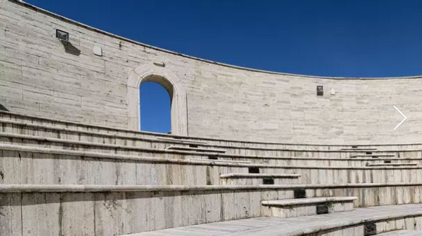 portico “La Passeggiata dei Filosofi” e attorno al largo piazzale in marmo di travertino: una moderna agorà impreziosita dai simboli della tradizione naturalistica e